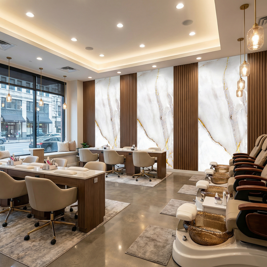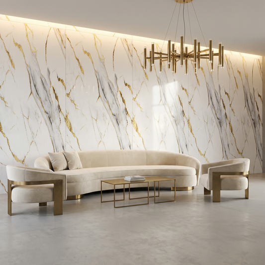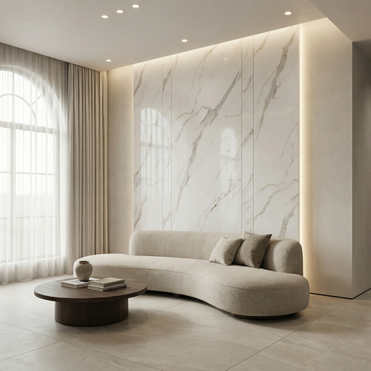 Designed to replicate the luxurious look of natural marble, these sheets offer a lightweight, durable, and cost-effective alternative without sacrificing style. Each panel features realistic veining, glossy finishes, and a smooth surface that instantly elevates any space - from living rooms and kitchens to offices, hotels, and retail interiors.